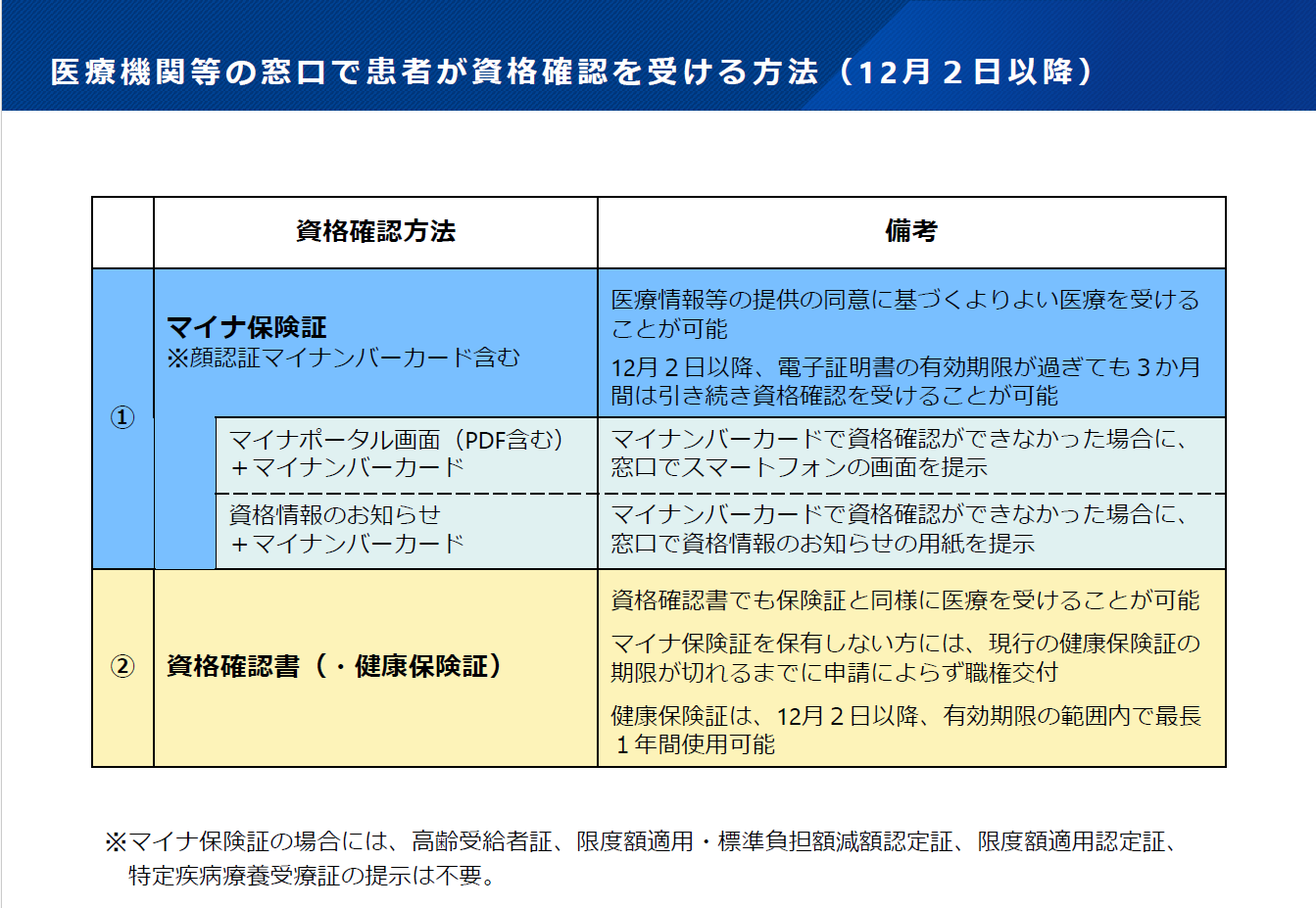 保険資格の確認はマイナ保険証または資格確認書が基本となります。
