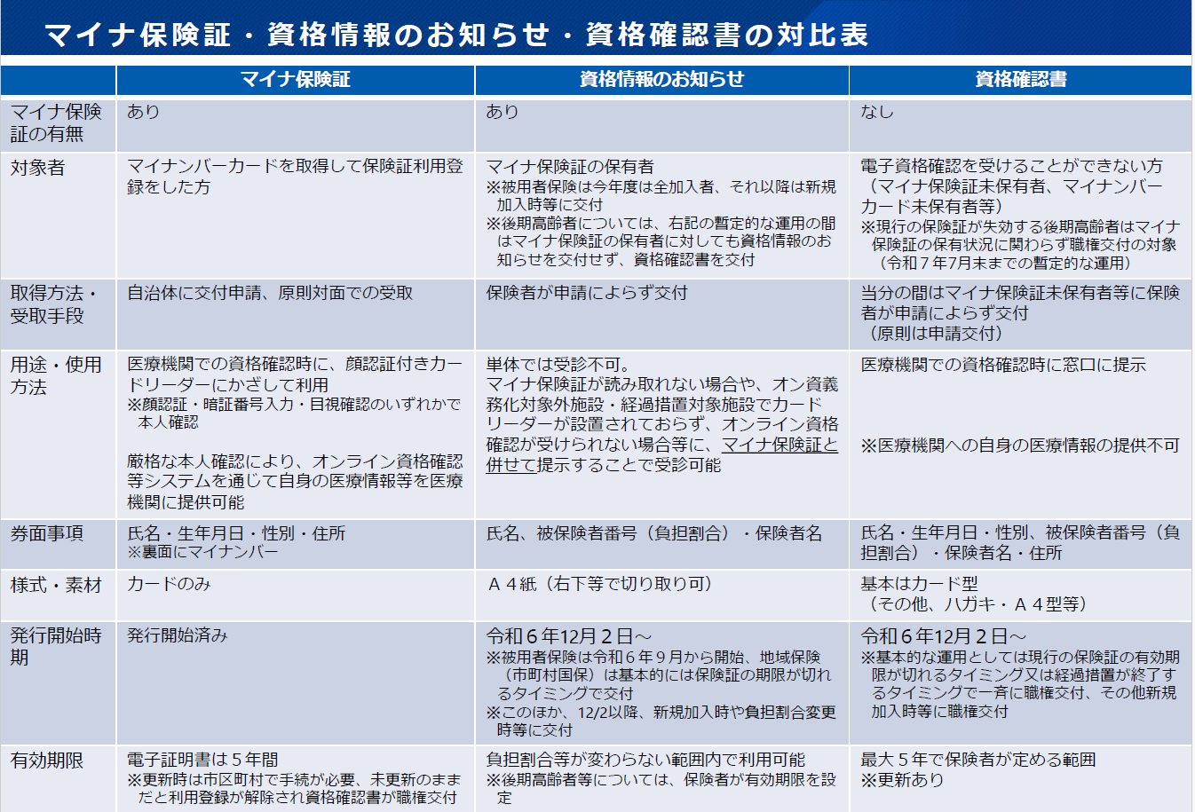 - 資格確認書・・・マイナンバーカードをお持ちでない方、またはマイナ保険証の利用登録をしていない方に交付